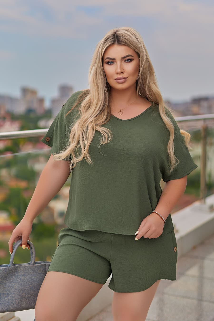 Літній костюм з шортами "Gemini" — комфортне та стильне рішення для теплої пори року. Вільний крій, легка тканина американський креп жатка, наявність великих розмірів роблять його універсальним вибором для жінок з різними параметрами. Костюм складається з короткої блузки та шорт середньої довжини. Модель чудово підходить для повсякденного носіння, прогулянок і відпочинку.Доступні кольори: графіт, бежевий, блакитний, хакі. Розміри: 42–56.